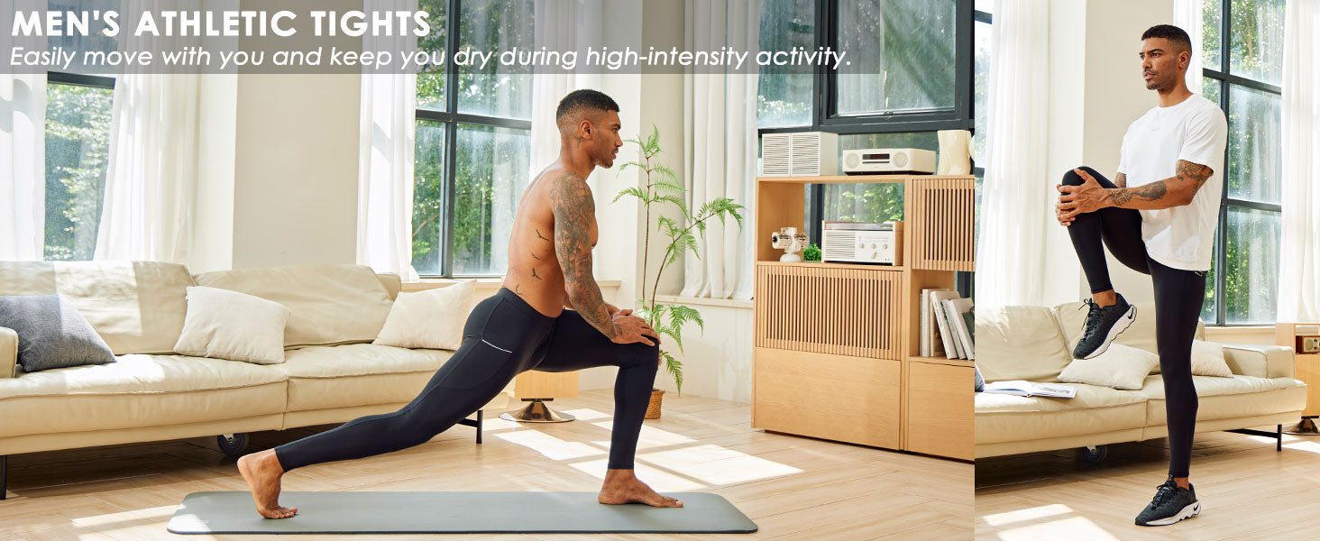 With moisture-wicking technology and stretchy compression fabric, the Men's Athletic Tights easily move with you and keep you dry during high-intensity activity.