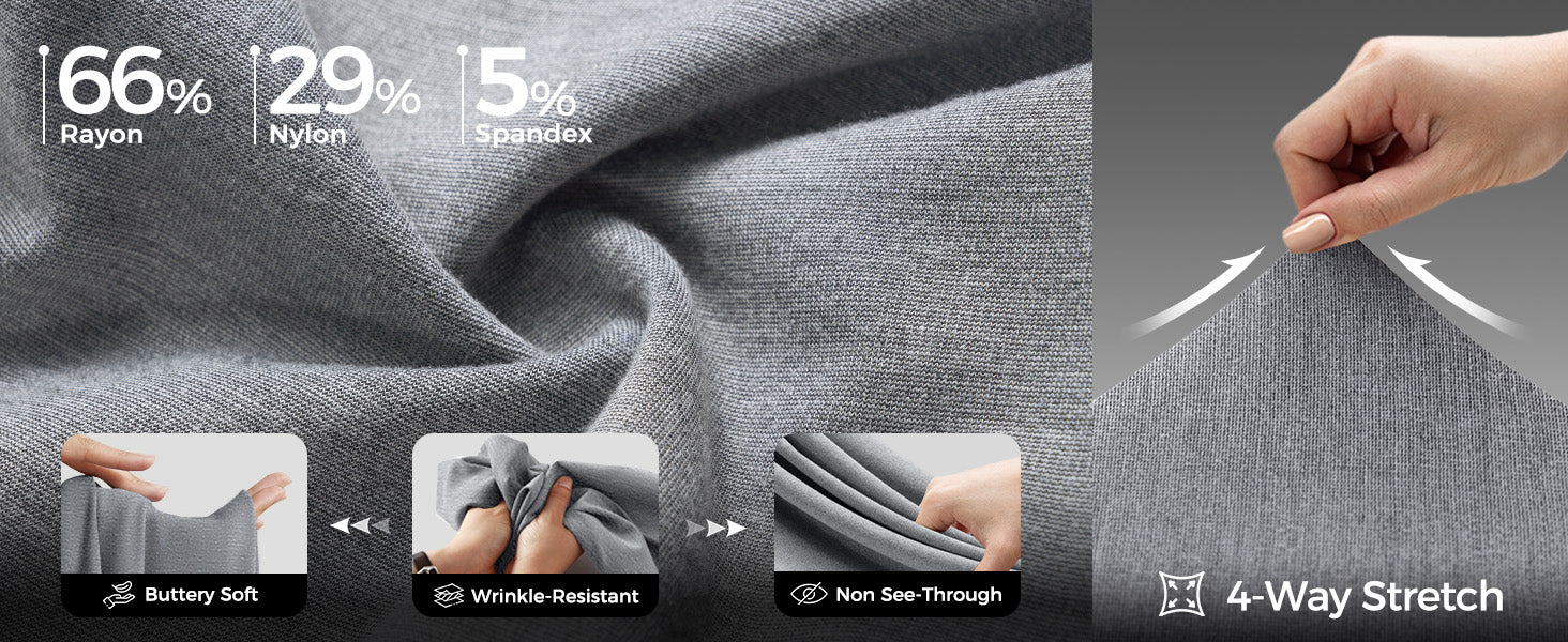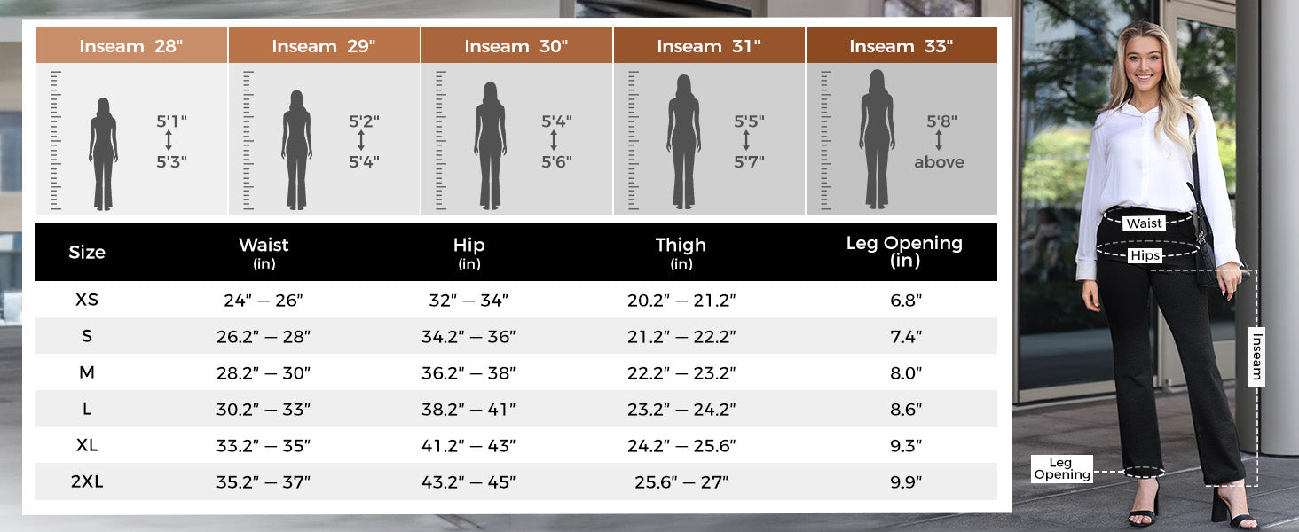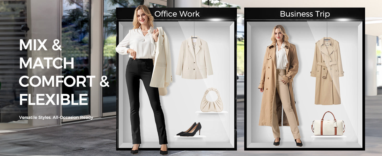 These Yoga Dress Pants combine the stretchy fit and feel of yoga pants with the style of womens dress pants. Classic straight leg, stretchy, thick designed to be a go-to work pants slacks.
